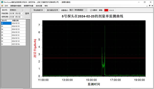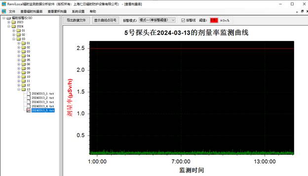 6、數(shù)據(jù)分析:免費(fèi)提供功能強(qiáng)大的RenLocal輻射監(jiān)測數(shù)據(jù)分析軟件,可通過曲線和棒狀圖的形式分析歷史劑量率和累積劑量數(shù)據(jù)以及實(shí)時(shí)查詢報(bào)警數(shù)據(jù)與統(tǒng)計(jì)分析等